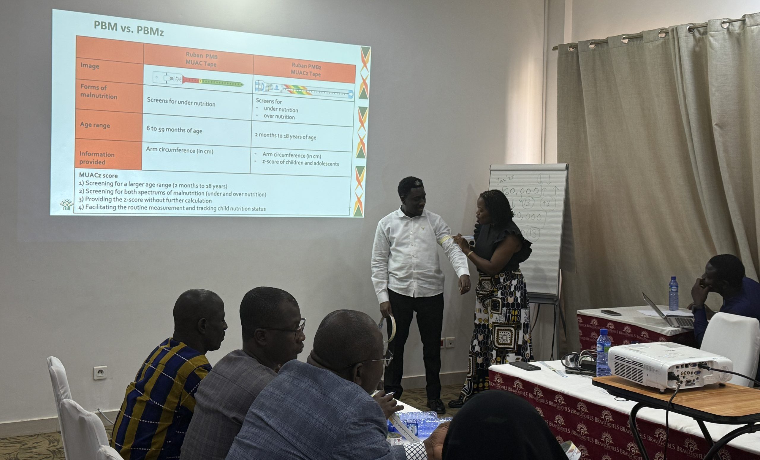 This second day was dedicated to domain- and methods-specific workshops in parallel breakout sessions. Three sessions focused on maintenance, scaling and spread of the projects’ activities beyond the funding period. Facilitated by Dr. Raissa Sorgho (UoB), among others, the participants from practice and politics highlighted challenges related to social support, financial constraints, lack of political will, and fear of change. They provided avenues to overcome these challenges, such as strong partnerships and strategic investment goals. The sessions also included demonstrations of novel tools for the assessment of nutritional status, including the new MUACz-score tape being used in Changemaker.